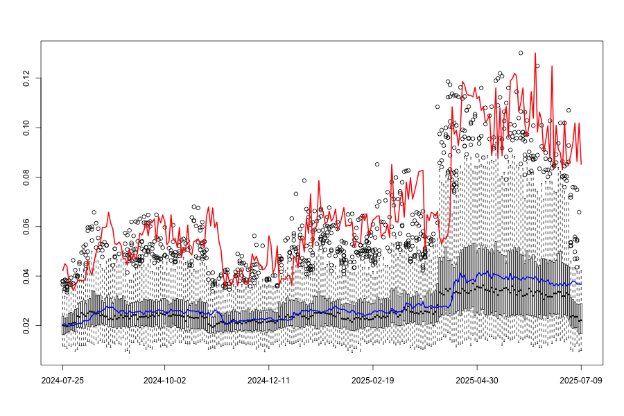 Orange: high risk of crisis in the financial market. A crisis might occur very soon. This risk level is given for lambda values between the 60%-ratio and 80%-ratio. (Updated July 2025)
