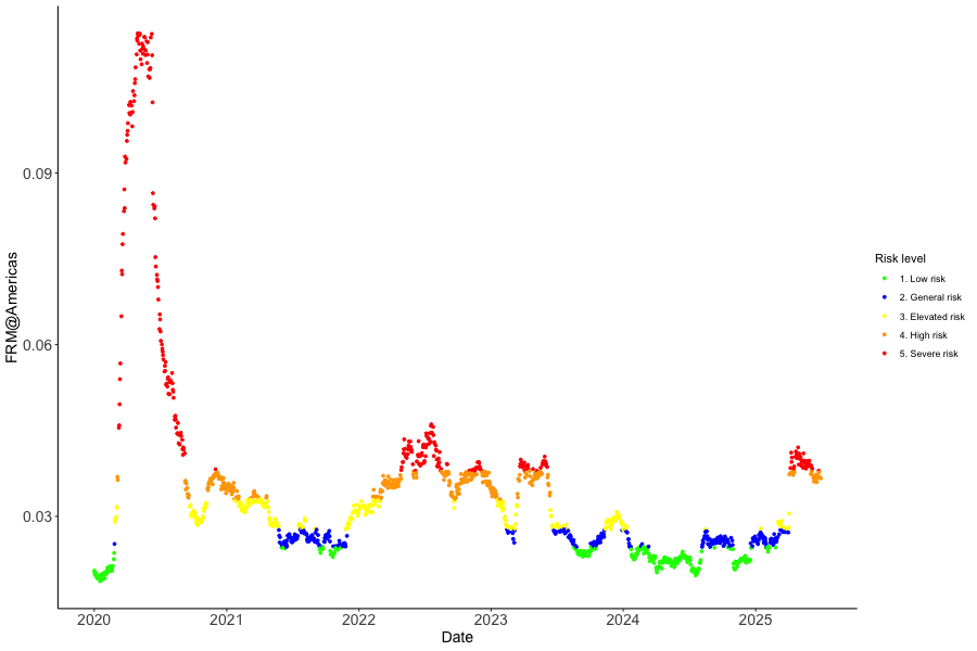 FRM Americas captures the systemic risk behaviour inherent within the 100 largest financial institutions listed on both the US’ S&P 1500 Composite Index and the Canadian TSX Toronto Composite Index.